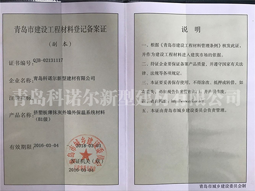 青島科諾爾新型建材有限公司主要產(chǎn)品:擠塑板( 阻燃B1級.B2級),泡沫板( 阻燃B1級.B2級)及各種造型,聚合物砂漿系列(粘結砂漿.罩面砂漿.膠粉.瓷磚粘接劑.填縫劑.界面劑),各種新型建材、保溫材料等等,公司產(chǎn)品遍銷全國各地,受到廣大用戶的一致好評。